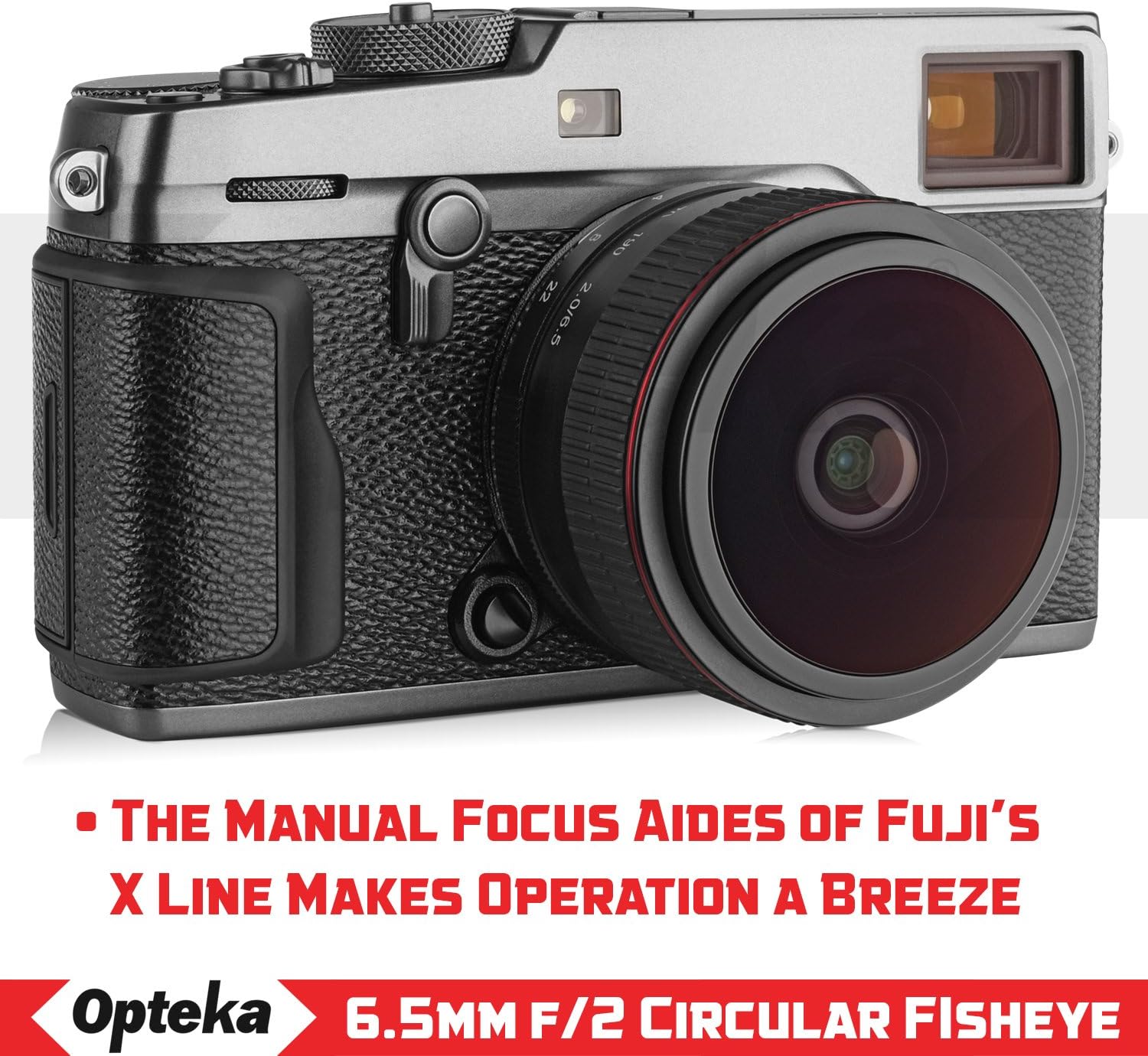 Opteka 6.5mm f/2 HD MC Manual Focus Fisheye Lens for Fuji X Mount APS-C Digital Cameras Black